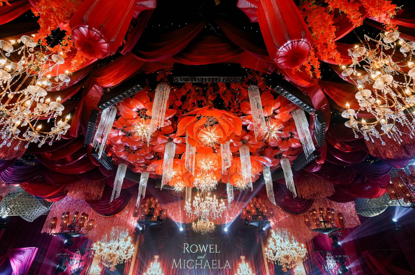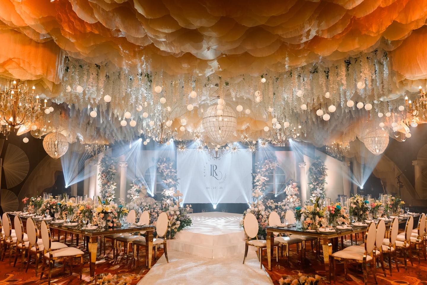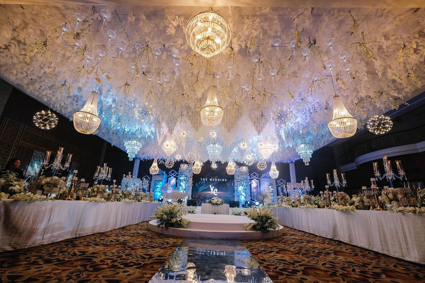 Elegant reception styling with ceiling treatment